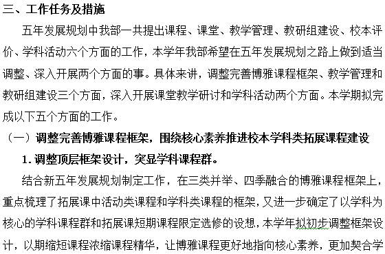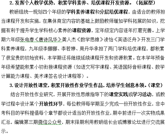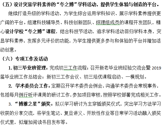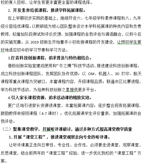 复旦初中2019学年第一学期课程教学部工作计划