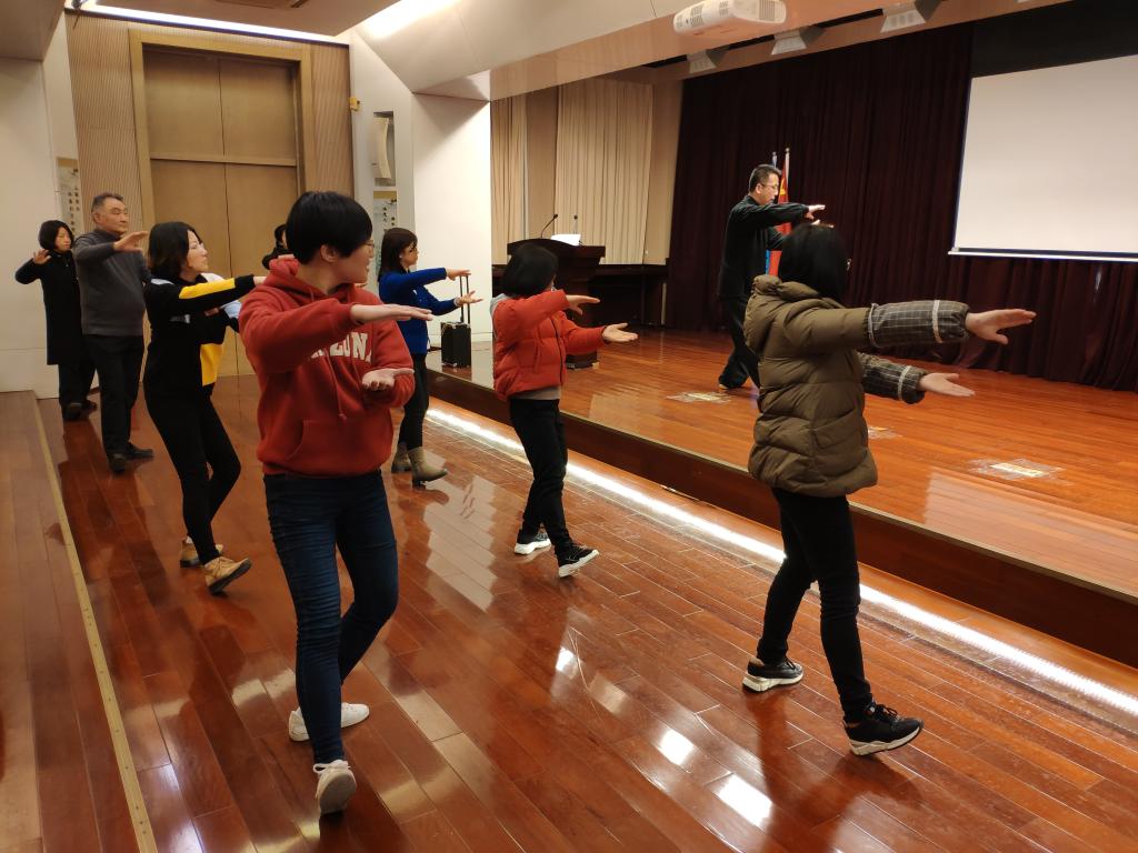 心灵手巧的手工达人严沁芸老师开设了羊毛毡戳戳乐的新项目,一团团柔软的羊毛在戳戳戳中逐渐成型,细节丰富多变又相当减压。潘绿园老师手捧人体模型,胆经、肝经、胃经,一脉脉细细分辨;膻中、大椎、足三里,一个个娓娓道来。乒乓房内红红火火,热情高涨,张致华与龚宇盛老师精心布置的彩旗格外惹眼,姚荔和胡晓广老师精心准备的课程在银色的小球的一扣一杀中划出有力的弧线。钟国靑老师一身黑色练功服,气场十足,带领着学员们领略太极的动静结合与刚柔相济。最强大脑龚人杰老师为大家一展心灵魔术的神秘,参加的小伙伴们全程一脸惊叹。